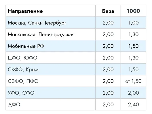 В таблице стоимость/цена на звонки по РФ: